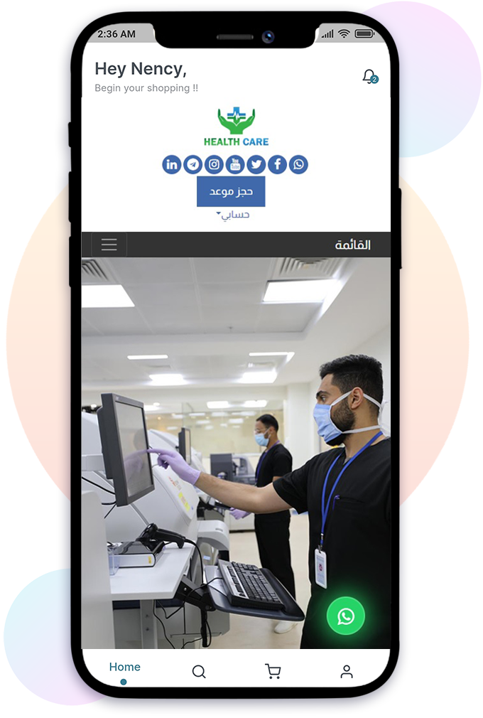 واجهة جذابة سهلة تمكن الزوار من عمل حجز بسهولة بأختيار العيادة و الطبيب , مع عرض صور و فيديوهات للمركز و الخدمات التي يقدمها.